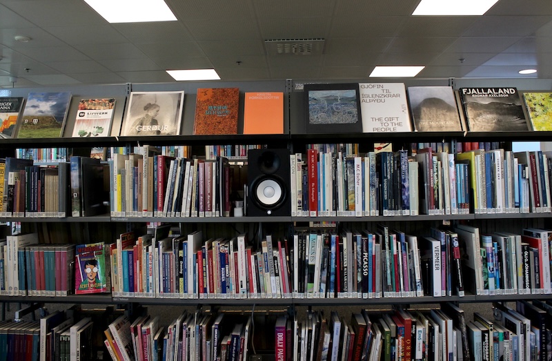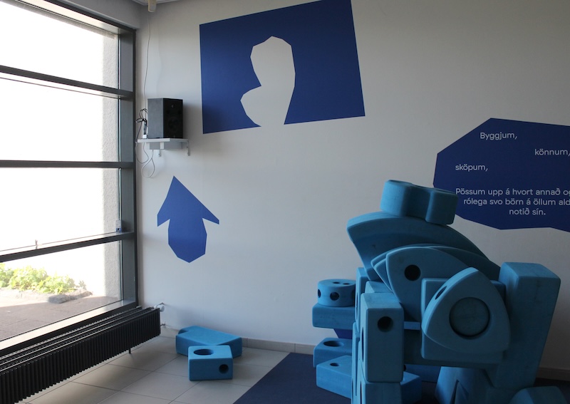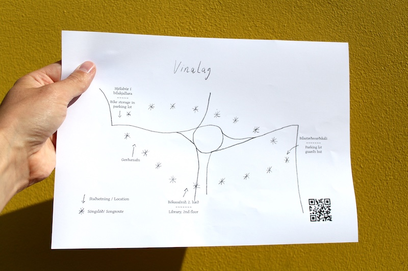 One speaker placed in a parking lot guard's hut. Textworks on windows by Berglind Jóna Hlynsdóttir.